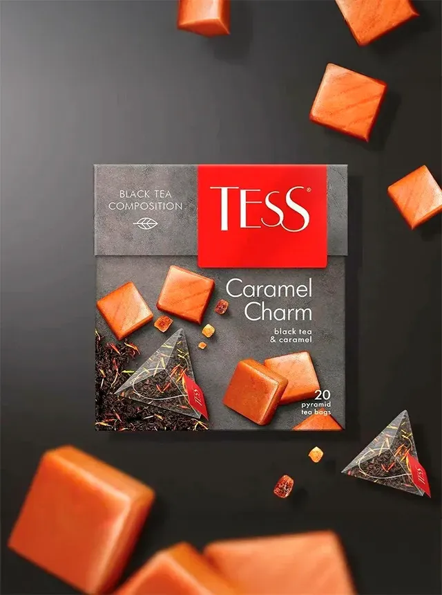 "TESS" Черный чай CARAMEL CHARM с ароматом и кусочками карамели 20pcs